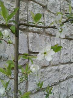 我が家の玄関前の西洋すももの木に、初めて花が咲きました♪