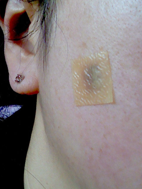 今は、あれね、傷パワーパッド・・・的な?かさぶたかわりになる的なやつで、ずっとはがさないらしい。