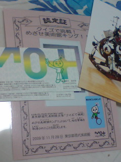 認定証をいただき、ポストカード、常設展示室の招待券も頂きました♪