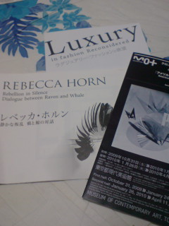 「レベッカ・ホルン」展では顔にエンピツをバンドで固定した女の人のフィルムが流れていてそのエンピツの本数を調べたりとか。